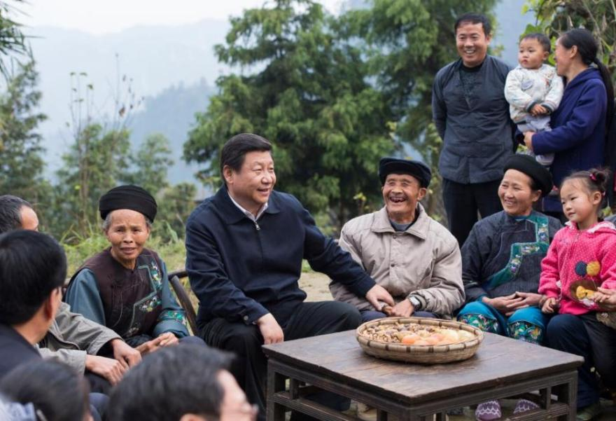 2013年11月3日,习近平总书记在湘西十八洞村考察时,同村干部和村民座谈。