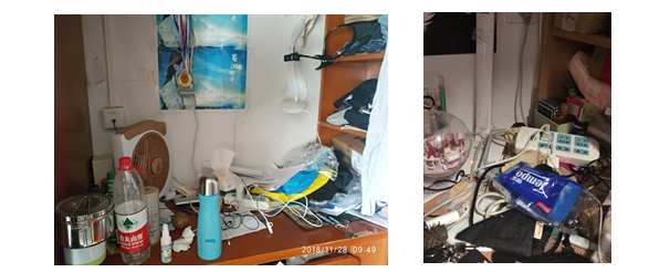 5、部分宿舍物品摆放混乱,卫生状况较差。