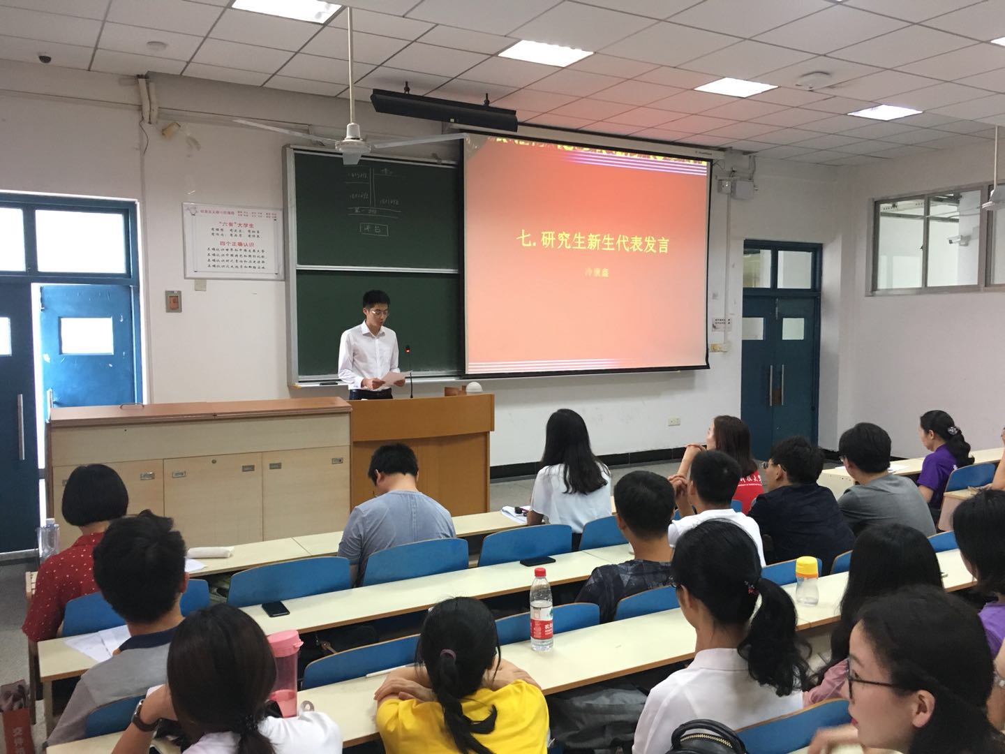 市政系硕转博员工丁家琪同学作为在校生代表发言。他和同学们分享了自己读研两年的经验与感受,告诉同学们在接下来的学习生活中要积极主动,不要害怕失败,学会在艰苦探索的过程中品味一点一滴的快乐,同时也要走出寝室,积极锻炼。希望同学们能勇攀高峰,在自己的人生中写下精彩的一页。