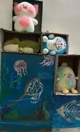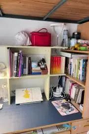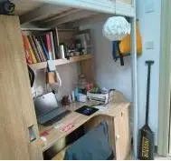 这是5栋126寝室,她们的寝室很好地表达了变废为宝的理念,将废纸壳用来做放置玩偶的柜台,打造成自己寝室的独家名片。寝室风格干净简约,浪漫文艺。
