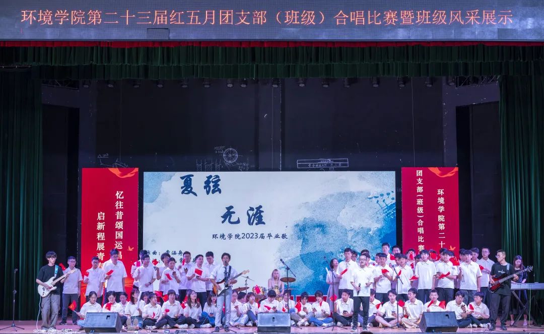 在这个毕业季,2023届毕业生用歌声唱响环境学子出征的理想,随着毕业生们原创歌曲《夏弦无涯》的演出,本次活动进入高潮。2019年蝉鸣悠扬的盛夏,他们初遇,在广袤的空间与无限的时间里,他们曾共享一颗行星与一段时光。婉转的歌声,记录了这场热烈的遇见,坚定了奔赴下一个目的地的勇气。
