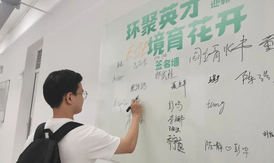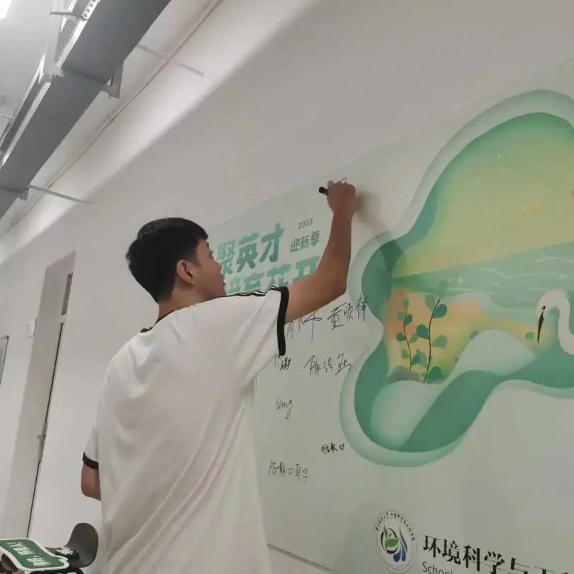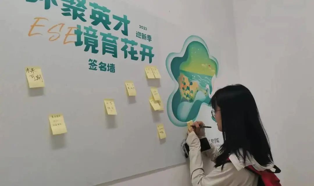 映入眼帘的“我在华科大​beats365很想你”路牌“华科大环境,我来了”打卡点给研究生迎新环节提供了满满的人文关怀、充满了​beats365特色元素;分布在走廊的“环聚英才,境育花开”主题留言板、签名墙,展现了独属于环境人的青春活力。在欣苑一栋324迎新点,特别设置了“时光信箱”活动点,鼓励研究生新生在明信片上写下对未来的期许,这些“特殊”的明信片将于一年以后通过惊喜的形式送回同学们的手中;“碳足迹计算”小游戏,通过软件模拟的形式寓教于乐,让新生从入学起即树立起环保意识。
