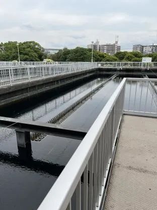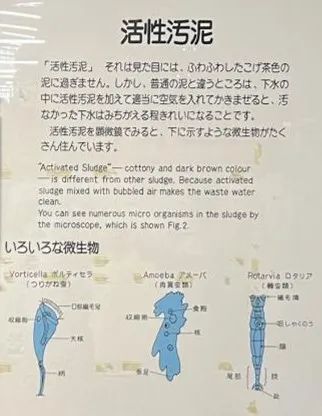 随后大家便前往了再生水处理工艺区参观实际工艺。首先映入眼帘的是飞船大厅前的鲤鱼塘,标明塘里的水就是再生水。带着这样的好奇,我们了解到这个再生水厂采用的工艺流程与国内类似,污水经过沉砂池-第一沉淀池-反应池(活性污泥法、A2O)-第二沉淀池(平流沉淀池、生物膜过滤法)-氯气接触槽-排放。在工作人员的带领下,每到一处工艺工作人员就会为同学们播放生动易懂有趣的自制工艺介绍动漫。同学们发现这里部分经过处理后的水,在使用O3消毒后会变成再生水。日本人将再生水作为日常冲厕、洗车、冲洗停车场等用水。