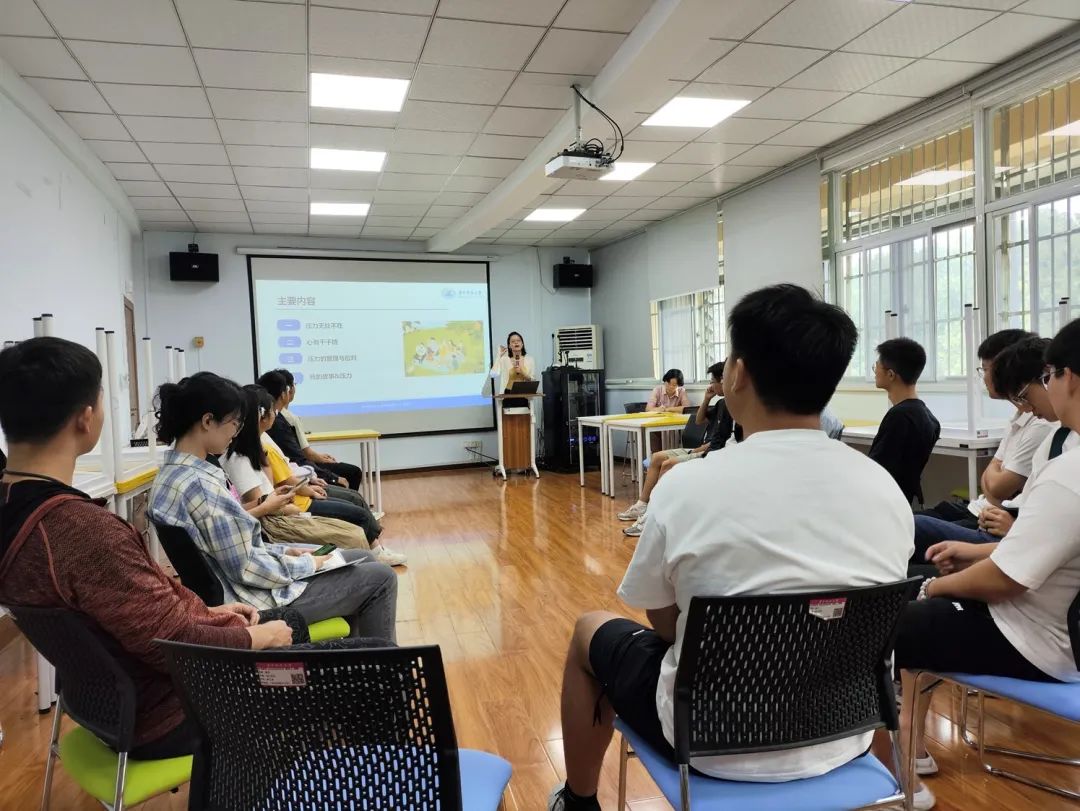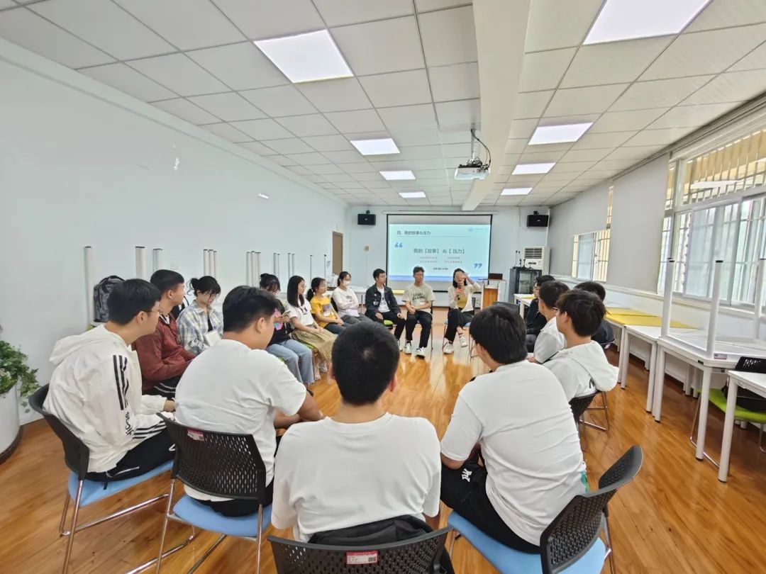 在“我的故事与压力”分享环节,同学们围坐一圈。对部分同学倾诉的压力问题,同学和老师都会基于自己的经历经验,提出对应的建议。经过一堂别开生面的“心理培训会”,各位同学对自身压力管控以及开导帮助他人都有了更深的理解。