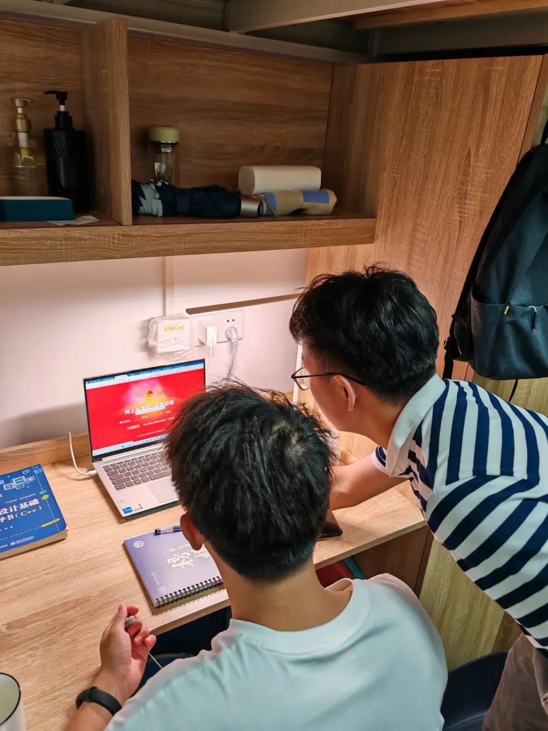 在韵苑5栋650宿舍,袁书珊和杨凯老师亲切慰问自云南香格里拉的旦增央追同学,了解员工的饮食和居住习惯,提供快速适应校园生活的一些建议。同时,鼓励同学们有余力的情况下,可以尝试进入实验室锻炼,探索自己感兴趣的方面。