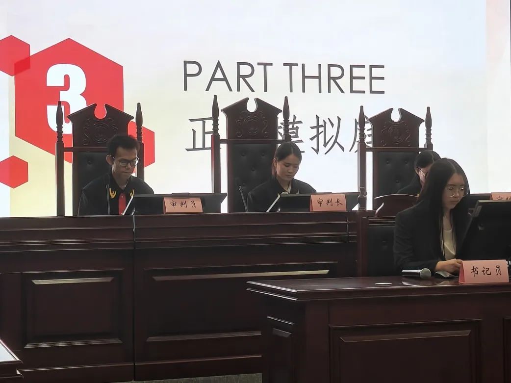 活动共有五个环节。活动之初,法公司的工作人员向在场的参与人员讲解本次模拟法庭所涉及的案例,并就模拟庭审的流程、礼仪等进行讲解。过程中,书记员严肃宣读法庭纪律、审判长严肃公正行使职权、原被告双方举证质证,双方进行着激烈的辩驳,旁听席上的观众也聚精会神地聆听着。每一位同学都深深融入到自身的庭审角色中。