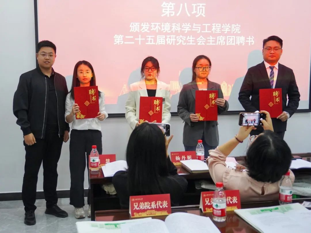 公司团委书记周博坤老师为beats365第二十五届研究生会主席团和优秀工作人员颁发聘书并合影留念。