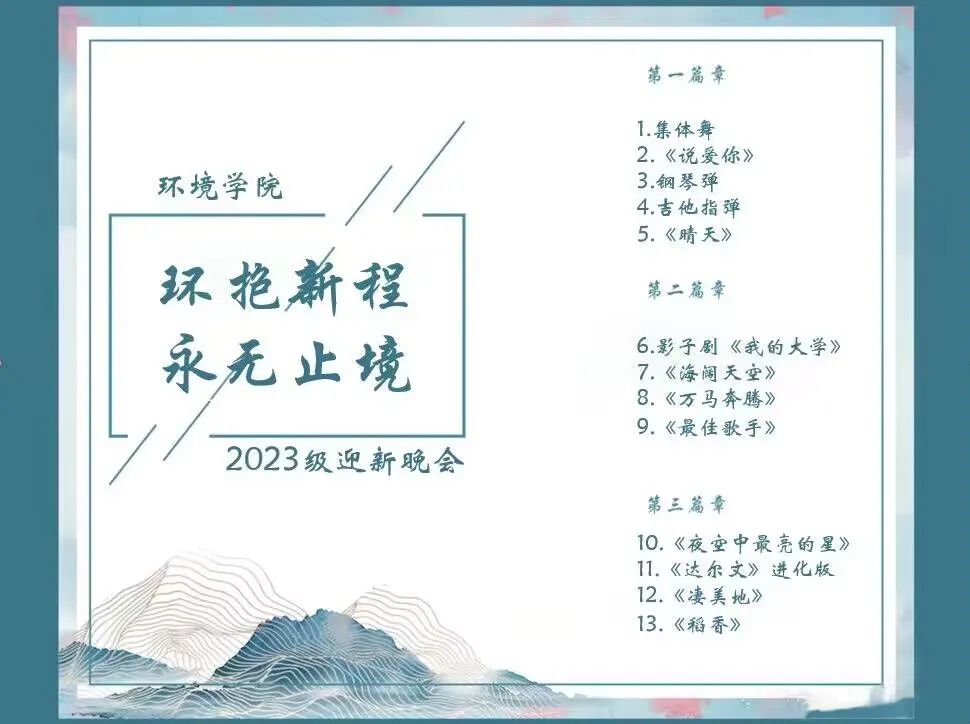 盛夏忽己暮,浅秋正渐浓。迎新晚会由多个篇章组成,舞蹈、歌曲、影子剧、乐队成为连接篇章的纽带,精彩节开启2023级新生新征程。