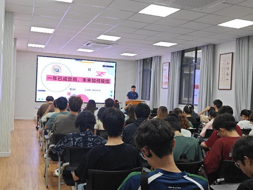 会上,杨凯老师首先带领同学们共同回忆了开学之初各位同学充满求知的目光,与后来同学们上课的状态对比,希望同学们调整自己的学习状态,找回自信,并提出了相关学习建议。随后,杨凯老师提出了对全体同学的要求,要求每位同学总结自己这一年的老员工活,并写一份成长报告。此外,伴随暑期将至,杨凯老师还向同学们提出了一些暑期建议,提出“七个一”的暑期安排,帮助同学们做好暑期规划。最后,杨凯老师强调了暑期和社会实践的安全问题,包括人身安全、财产安全、消防安全、宿舍卫生以及防诈骗。