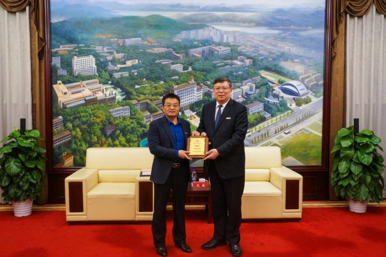会上,杨林江和高亮代表双方签署捐赠协议。尤政向员工颁发捐赠纪念铭牌。