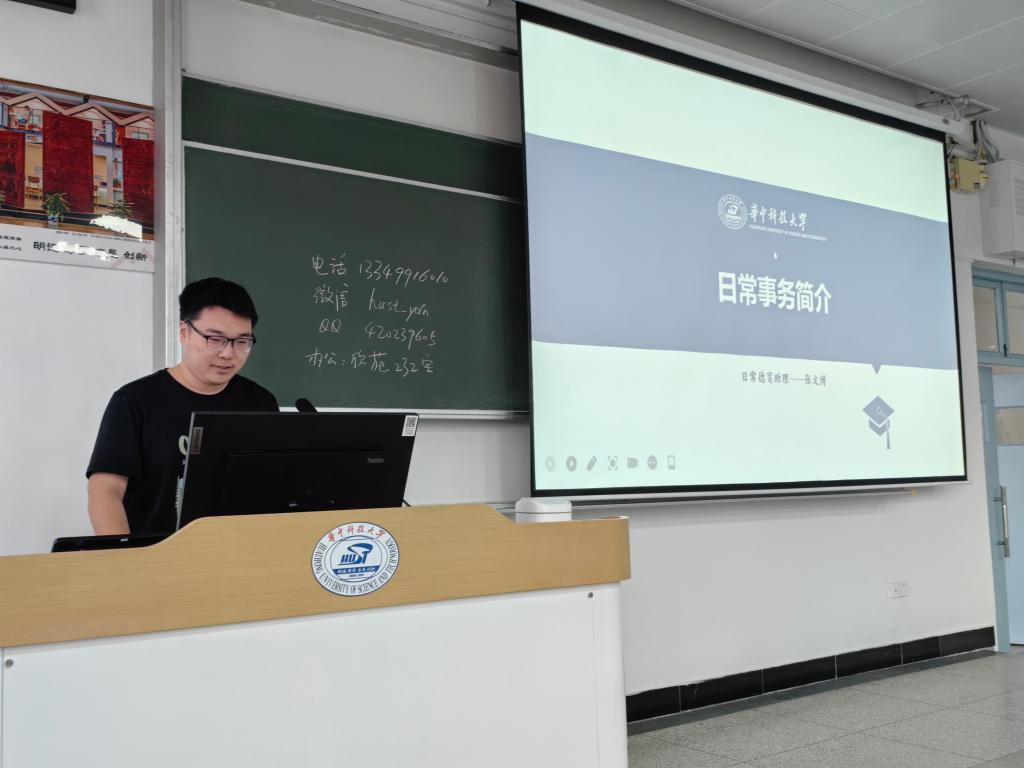 日常德育助理张文博为新生宣讲资助政策,从“奖助勤贷补”角度详解公司资助政策,鼓励新生借力政策实现全面发展。同时结合《研究生手册》介绍日常管理规范,从研究生实践管理、“思想-安全-心理”多级网格管理、班级建设、校园安全等多个层面展开,强化新生纪律意识和安全意识。