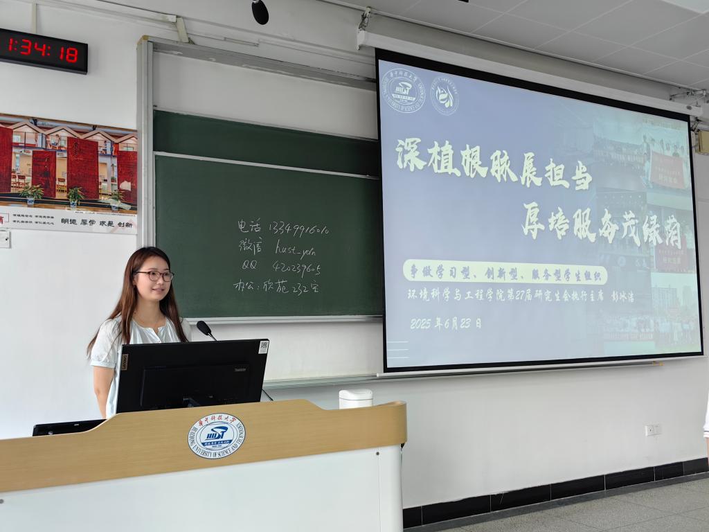 公司研会主席团成员彭冰洁以“深植根脉展担当,厚培服务茂绿荫”为题,介绍院研究生会的内部建设、特色活动与影响力。她提到,研会作为实践型服务平台,以“学习型、创新型、服务型”为定位,为新生搭建成长舞台,号召大家积极加入,服务师生、提升自我。