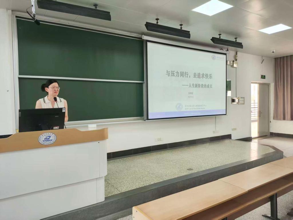 校心理健康教育中心张柯兰老师以“与压力同行、去追求快乐”为主题,为新生带来一场心理健康教育讲座。张老师凭借扎实的专业知识和丰富的辅导经验,就研究生阶段可能面临的心理压力与情绪问题提供了科学建议与调适方法,帮助同学们以积极心态迎接新的学习生活阶段。