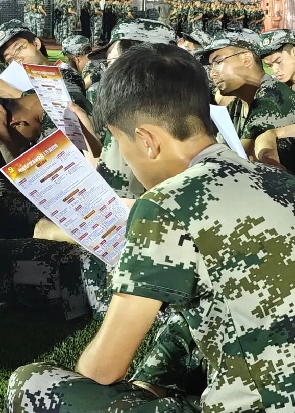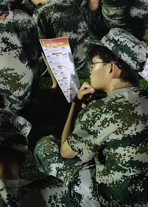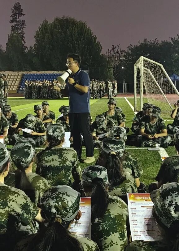 夜幕下,迷彩队列依旧整齐挺拔,初心如炬点亮夜空!今晚,杨凯辅导员在军训场为新生开讲特殊的早日站在党旗下党课,让信仰的种子在青春心田悄然扎根。