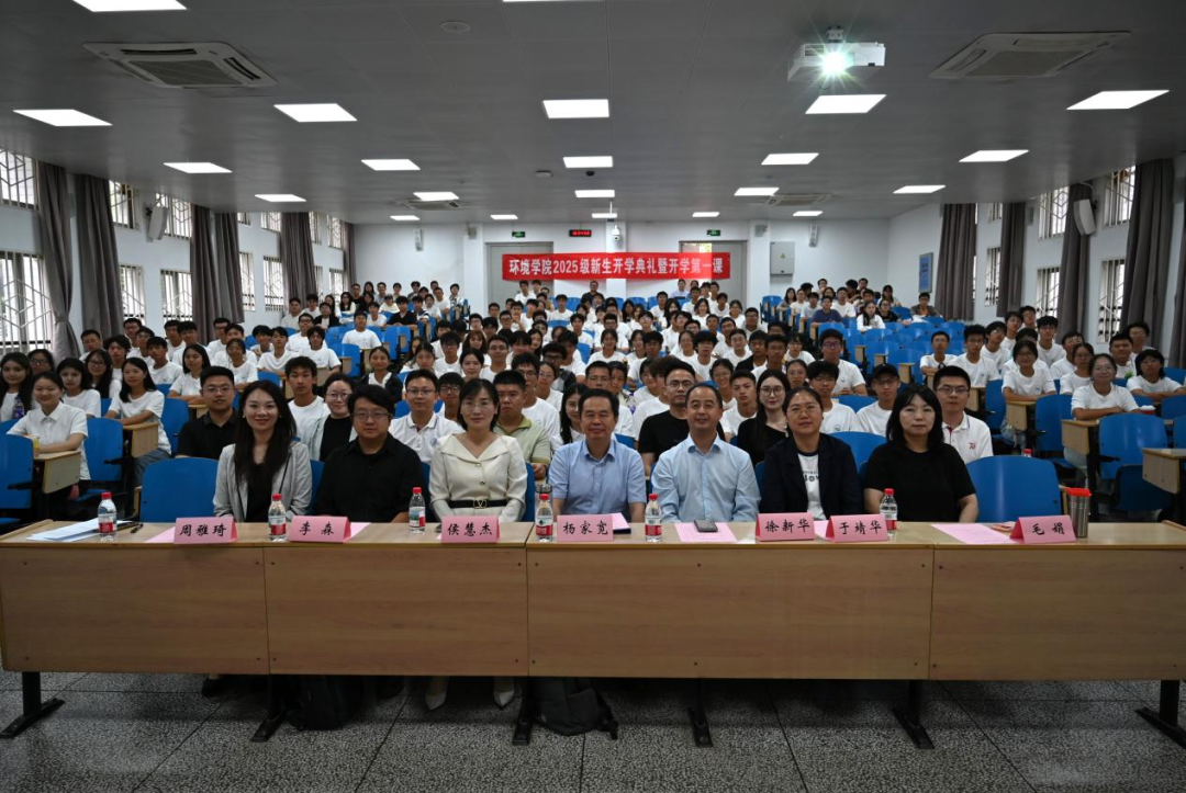 杨家宽首先对117位本科新生、145位研究生新生的到来表示热烈的欢迎,鼓励同学们努力成长为有家国情怀、全球视野、顶尖专业素养的一流环境人才。他对全体新生同学提出三点期望:一是传承许党报国、心系民生的红色基因。希望同学们将绿水青山就是金山银山的理念内化于心,外化于行,将个人的学术追求与国家重大战略相结合。二是坚持笃行求真,知行合一的实干精神。环境学科是一门实践性很强的学科。本科生同学要勇于带着批判的眼光去审视课本上的内容;研究生同学们要勇于挑战学术前沿,努力将论文写在祖国大地上。三是秉持顶天立地、追求卓越的创新思维。同学们要敢于触碰科技的天花板,主动学习学科交叉知识,实现从优秀走向卓越的境界跃升。
