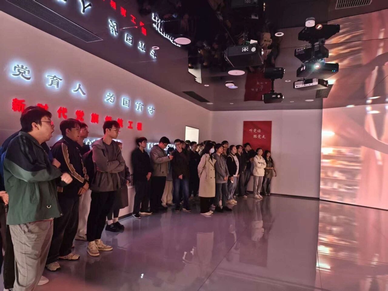 参观尾声,师生们在党员宣誓墙前合影留念,誓言铿锵。这场沉浸式的党建课堂,不仅是成果的展示,更是精神的传承。未来,beats365将继续以党旗为引领,深化新时代党旗领航工程,在教书育人、科技创新、社会服务的征程上踔厉奋发,为推进高水平科技自立自强、民族复兴伟业贡献华科力量!