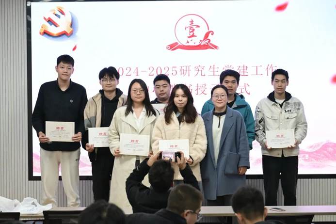 大会第四项,24-25年党建聘书授予仪式。由辅导员杨凯为本科生新部门负责人授予聘书。辅导员杨丹妮为研究生新部门负责人授予聘书。