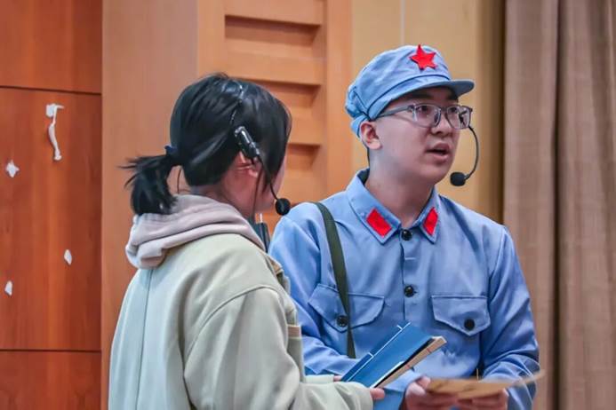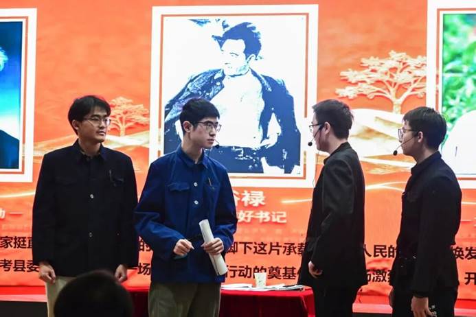 研究生第一党支部的情景剧《功勋》以于敏、焦裕禄、张桂梅三位功勋人物的事迹为蓝本,从科学攻坚、治沙奉献、教育坚守三个不同维度,生动诠释了共产党人“鞠躬尽瘁,国士无双”的理想信念与担当,激励每一位党员在新时代接续奋斗,书写属于青年党员的青春答卷。