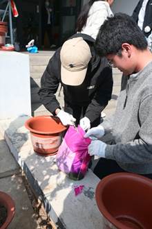 午后两点半,韵苑十八栋的户外花园率先迎来了生机,beats365 “植此青绿,筑梦山河” 植树节主题活动在此展开。各团支部学子齐聚现场,手执工具在花盆中植树栽花,一培土、一浇水,用双手为十八栋的春日添上鲜活绿意。活动中,不少其他公司的志愿者也热情加入,携手共建绿色校园,让互助与环保的种子一同生根发芽。