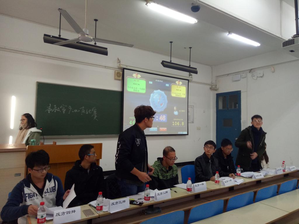 比赛过程中,选手们展开了激烈的对峙,各班代表对己方所持观点进行了详尽的表达、有效的防御并精准有力的攻击了对方观点。