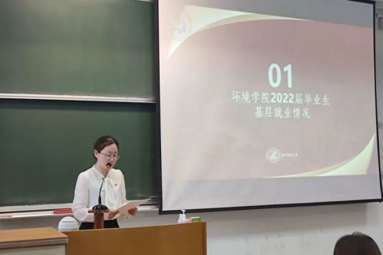 在庄严的国歌声中,本次活动拉开帷幕。首先,杨丹妮老师为我们介绍beats3652022届毕业生基层就业情况。她提到2017年至今,beats365已有12名毕业生参加西部计划,2名毕业生应征入伍。在基层就业的毕业生中,不乏优秀骨干。