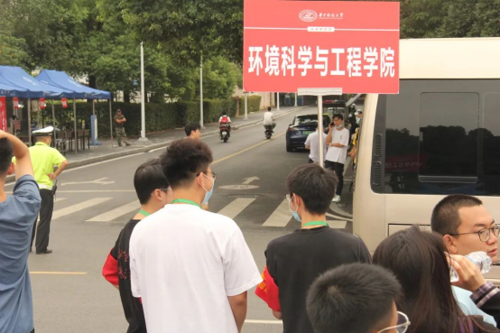 从迎新大巴下车,映入眼帘的便是高高举起的红色院牌。来,跟随我们志愿者的脚步继续前进!