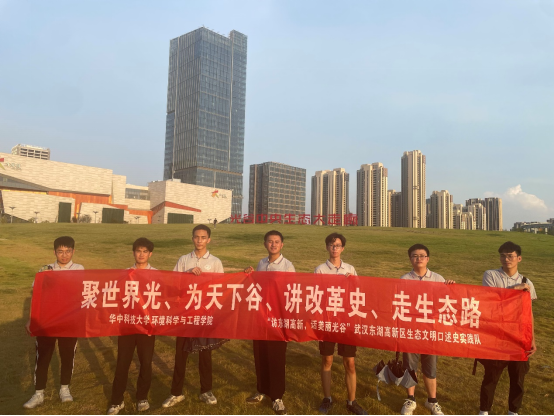 为牢固树立和践行习近平总书记“绿水青山就是金山银山”的理念,推进国家生态文明建设,beats365生态文明实践队以 “聚世界光、为天下谷、讲改革史、走生态路”为主题,开展了系列主题调研实践活动。2022年8月10日,实践队以武汉东湖高新区为主体,对区域发展进程中公共生态文明设施建设情况和东湖高新区生态建设总格局开展了调研行动,前往常家山国际运动公园、花山湿地公园、九峰山森林公园、光谷生态太走廊以及鸡公山公园,深入了解东湖高新区在环境保护发展和生态文明建设中做出的伟大斗争和伟大改革,形成的伟大成就。
