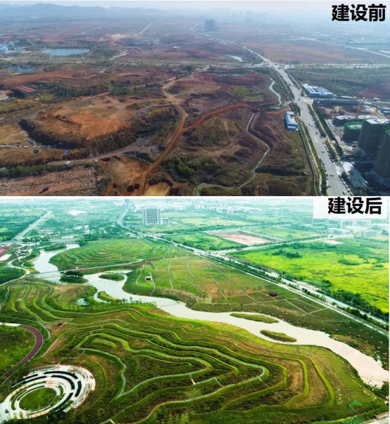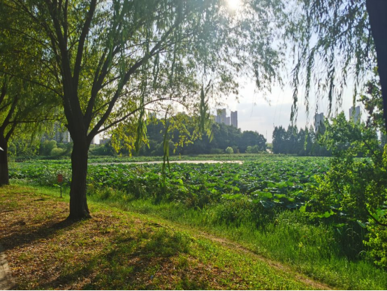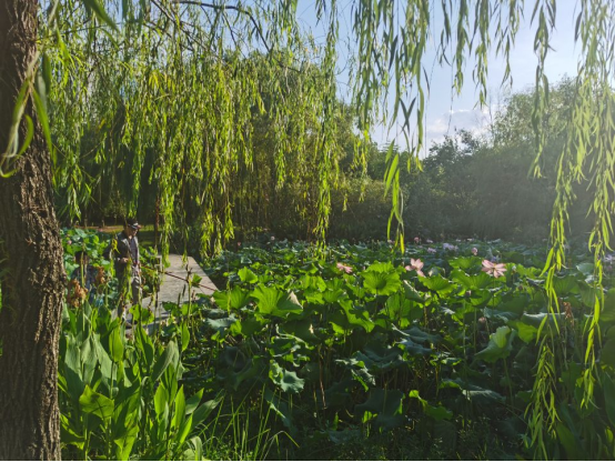 在花山湿地公园内,实践队先后参观了生态公园和花山生态艺术馆。在这里看到了东湖高新区将绿色可持续发展与高新技术相结合,将 “海绵城市”和”水体生态治理”概念引入生态文明建设中来。湿地公园内引入荷花、水葫芦、芦苇等挺水植物,即改善水体环境,又形成了别样的景观;下沉式绿地、雨水花园、生态湿地相结合构成了漂亮的城市海绵风景。