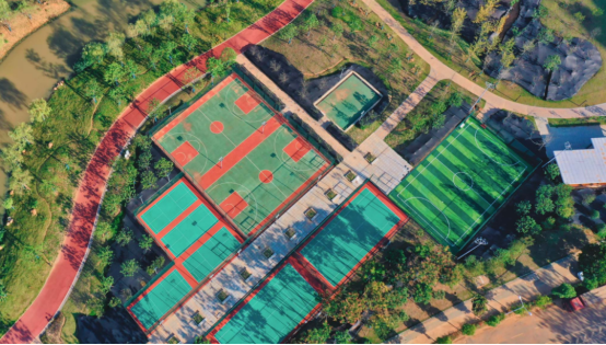 光谷中央生态大走廊建设了驿站、球场等便民设施。