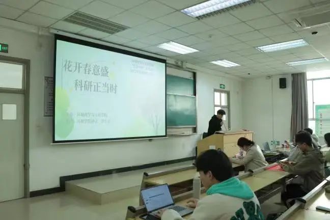 参观完毕后,同学们前往东九教学楼展开交流,不同科研团队的研究生代表依次上台宣讲,就课题组导师设置、主要研究方向以及日常工作进行介绍。台下的同学们全神贯注,认真思考自己感兴趣的研究方向。