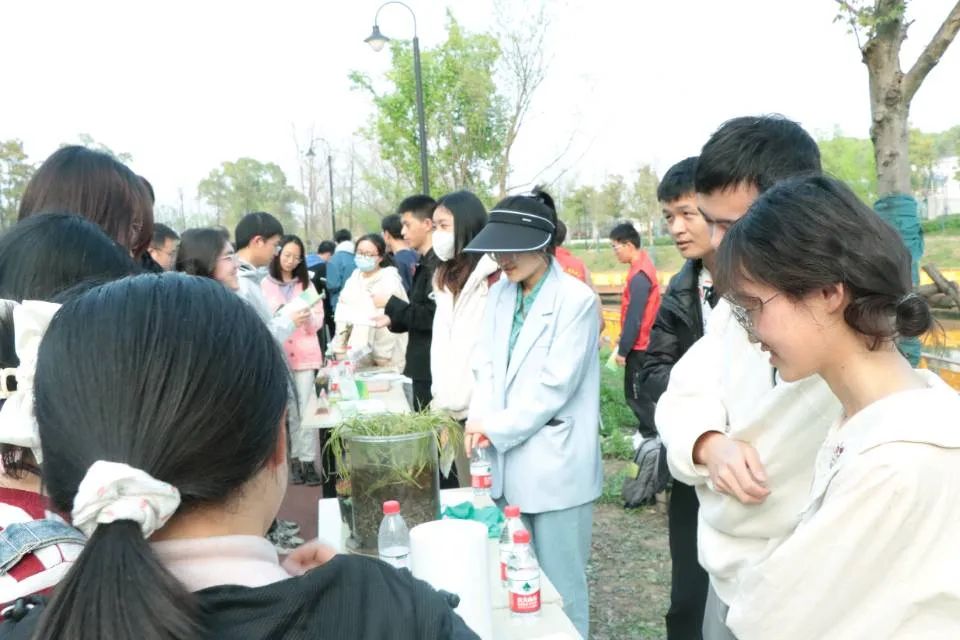 活动最后,全体与会人员共同前往湖溪河畔参与课题组交流与科普知识竞答,各课题组展示方式丰富多样,既有海报宣传和模型演示,也有趣味互动游戏,同学们纷纷就自己感兴趣的科研方向展开互动,现场气氛热烈。