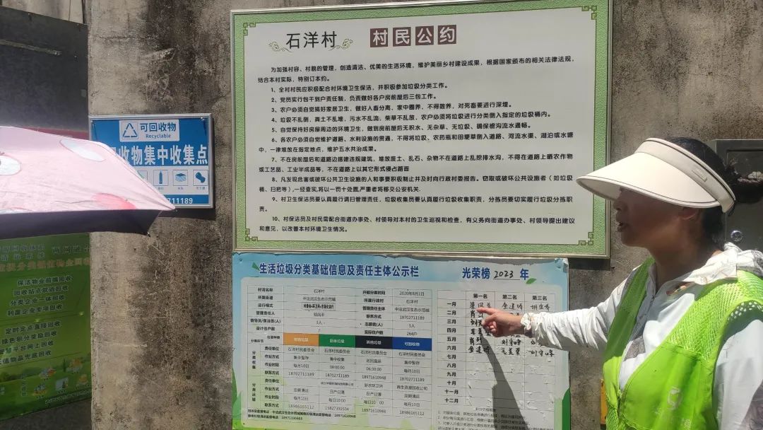 实践队通过自己的调查,对石洋村的垃圾分类政策有了更加全面的认识。负责石洋村垃圾分类部分的相关人员并不只有一个,而是由18个人形成的一个完整体系,环环相扣。有人负责垃圾桶摆放以及垃圾归类检查工作,也有人负责宣传垃圾分类相关知识,实践队相信,石洋村能够成为蔡甸区垃圾分类模范村,肯定与它优秀的政策有关。