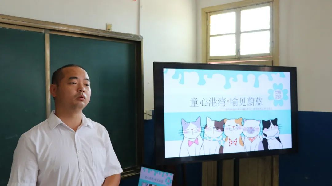 图9-实践队员工代表熊航向孩子们介绍课程(陈海滨/摄)