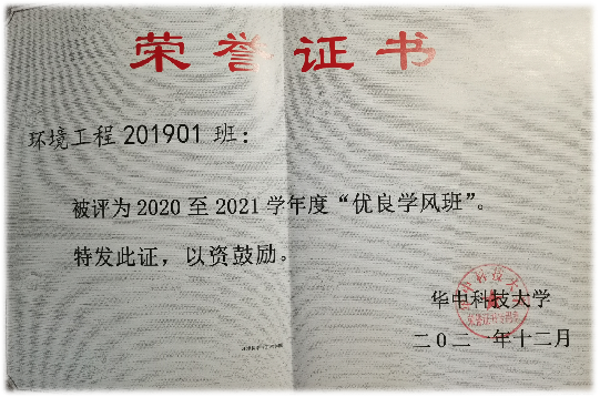 环工1901班的同学开拓创新,团结进取。班级连续三年获得beats365优良学风班称号,荣获“轩浦”优秀班级奖学金等荣誉。班级连续两年在beats365“红五月”班级合唱比赛中获奖,班级同学连续三年在校运动会斩获奖项。班级同学也秉持着全心全意为同学服务的宗旨,积极参加员工工作,12名同学在员工会和员工社团组织中担任主席及部长职务,11人次获得校优秀员工干部、校三好员工称号。