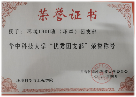 四年以来,环工1901班团支部多次评为五星团支部,并先后获得“校优秀团支部”、“校标兵团支部”等荣誉称号。
