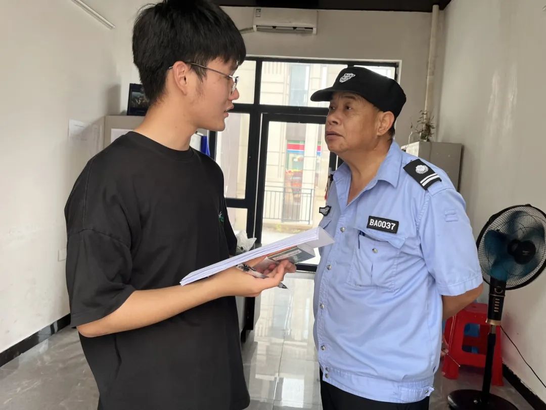 实践小组成员向当地某小区保安采访周边社区环境治理情况
