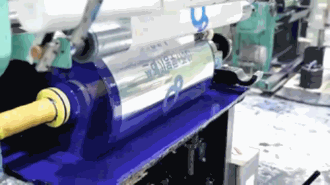 通过油墨滚筒将乙醇基油墨不断循环,保持其黏性,并将图案印在塑料袋上。