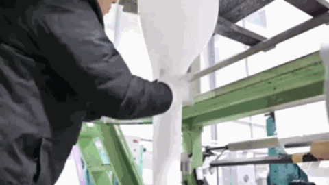 把准备好的PE(聚乙烯)原料通过加热融化的形式加工成塑料薄膜,主要使用吹膜机来进行操作。冷却以后就形成了制作塑料袋的最终原料薄膜。塑料薄膜是根据客户的订单要求吹制成不同的宽度和厚度,以及是否压纹处理。