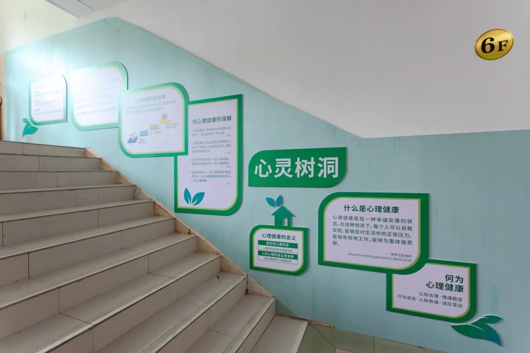 到了第六层,在这里公司精心布置了心灵树洞,向同学们讲解了关于心理健康的基本知识,同学们在学习之余,也要时刻关注自己的心理健康,注意及时调整状态,在情绪低落或伤心难过时及时找人倾诉。