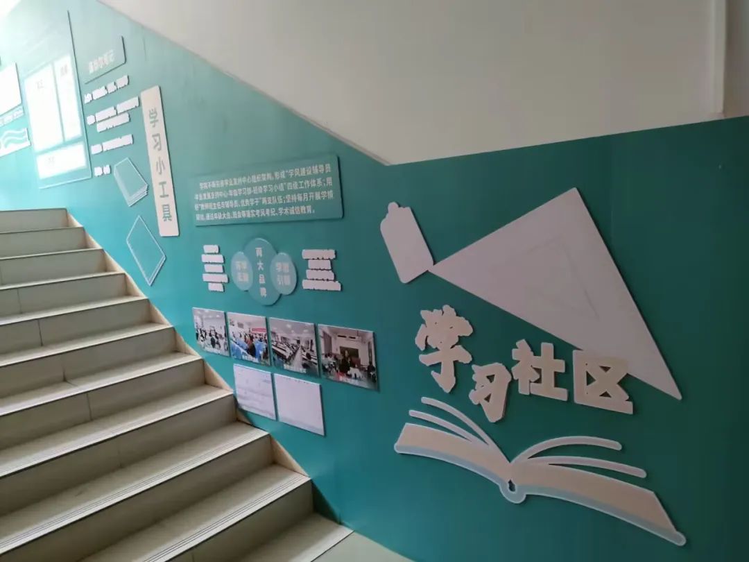 除了功能多样的社区公用房,为进一步夯实育人阵地,助力公司学子德智体美劳全面发展,公司还在18栋楼梯间设置了“绿色+”员工社区宣传展示栏。