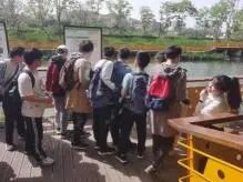 20级本科生戴佳月同学作为本次研学活动的主讲人。在湖溪河的生态浮岛旁,她用生动有趣的语言向同学们介绍湖溪河治理的“黑科技”--生态浮岛,帮助同学们了解生态浮岛的来源和功能。在水质监测技术介绍中,她从高中化学的角度解释pH值、溶解氧、浊度等概念,以问答的方式调动同学们联系所学知识知识解决环境问题,极大地激发了同学们的聆听热情。