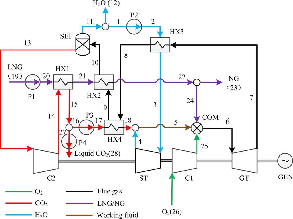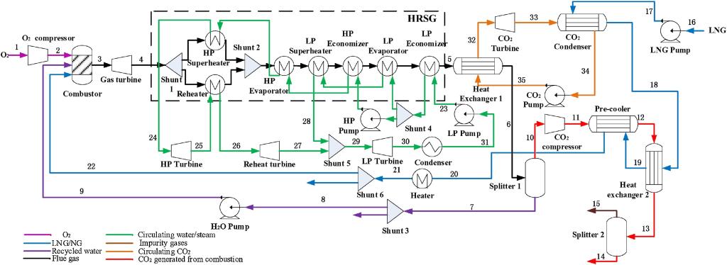 团队基于此构建了LNG冷能利用和天然气富氧燃烧电厂系统,将高品位的LNG冷能用以实现电厂的低成本CO2捕获。研究表明将LNG冷能合理的应用于碳捕获系统,可以显著提高富氧燃烧电厂效率,LNG冷能也得到了充分利用。在研究中也考虑了不同稀释气体、压力等因素对系统效率的影响,对实际应用有一定的意义。相关研究成果在Applied Energy(Xiang Y, Cai L, Guan Y, Liu W, Han Y, Liang Y. Study on the configuration of bottom cycle in natural gas combined cycle power plants integrated with oxy-fuel combustion. Applied Energy. 2018;212:465-77.)和International Journal of Greenhouse Gas Control(Xiang Y, Cai L, Guan Y, Liu W, Liang Y, Han Y, et al. Influence of H2O phase state on system efficiency in O2/H2O combustion power plant. International Journal of Greenhouse Gas Control. 2018;78:210-7; Han Y, Cai L, Xiang Y, Guan Y, Liu W, Yu L, et al. Numerical study of mixed working fluid in an original oxy-fuel power plant utilizing liquefied natural gas cold energy. International Journal of Greenhouse Gas Control. 2018;78:413-9)发表。以上文章以beats365为完成单位,蔡磊和管延文老师为通讯作者,硕士研究生向艳蕾和韩逸潇分别为第一作者。2018年Applied Energy和International Journal of Greenhouse Gas Control的影响因子分别为7.900和4.078。