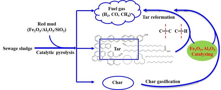 市政污泥富含有机物,近年来围绕污泥热解产氢的技术得到国内外广泛关注。本论文基于杨家宽教授团队前期提出的芬顿-赤泥复合调理剂,对得到的深度脱水泥饼的热解产气进行了研究。利用分散DAEM(Distribute activation energy model)模型从热解动力学角度探究了赤泥中几种主要成分Fe2O3、Al2O3和SiO2对污泥热解产气过程的影响,并用热解实验对模拟结果进行了验证。结果表明在高温下,Fe2O3和Al2O3可显著降低污泥热解表观活化能,同时作为催化剂,可促进热解炭和热解焦油中长链脂肪烃和芳香族化合物的C-C和C-H的断裂,从而得到富氢裂解气。本文为污泥深度脱水后的泥饼在热解产氢方面的应用提供了重要理论依据。