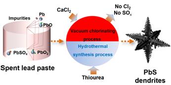 杨家宽教授团队在ACS Sustainable Chemistry & Engineering 上发表论文提出一种废铅酸电池铅膏绿色转化为硫化铅树枝晶的工艺
