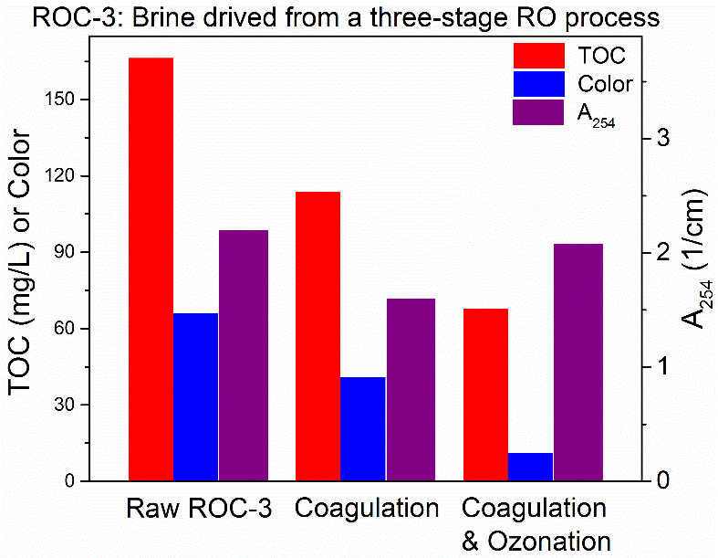随着国家对环境保护的重视,煤化工行业“零排放”逐渐成为发展趋势。针对煤化工废水浓缩液成分复杂、盐分高且含有毒有害物质的特质,本文采用混凝联合臭氧氧化处理煤化工废水的三级反渗透浓缩液。研究发现,混凝与臭氧联用可有效去除废水中的难降解物质,FeCl3混凝剂去除效果明显优于AlCl3,臭氧氧化可有效去除水中的TOC及色度,研究还发现了臭氧氧化分子量小于2kDa的有机物时A254显著增加的现象。本研究的结果为该技术的工业化提供了科学依据和理论指导。