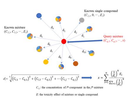 实际环境中,污染物往往是以混合物的形式存在。在研究混合污染物的毒性时,人们常用浓度加和模型(CA)和独立作用模型(IA)预测混合物的联合毒性。但是CA和IA模型无法预测混合物的协同作用或者拮抗作用。同时,对于含有毒物兴奋效应(Hormesis)物质的混合物,CA和IA也无法准确预测其毒性。针对以上问题,该论文首先将单个物质和混合物视为散布为多维空间中的散点,构建多维空间体系。然后,通过欧氏距离法选择相似度较高的混合物作为插值节点,最后通过距离反比插值法预测更多未知混合物的毒性。论文以16组二元混合物体系为数据集,进行了内部验证。通过3组二元混合物体系,进行了外部验证。两种验证方法的结果表明距离反比法预测含有Hormesis物质的混合物毒性或者混合物的毒性相互作用都具有较高的准确性。