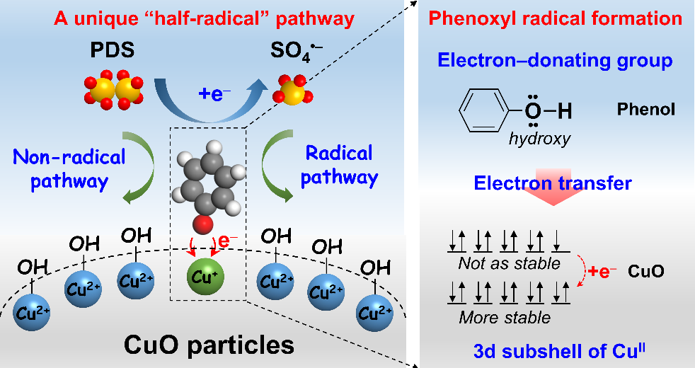 论文题目:In situ Formed Phenoxyl Radical on CuO Surface Triggers Efficient Persulfate Activation for Phenol Degradation
