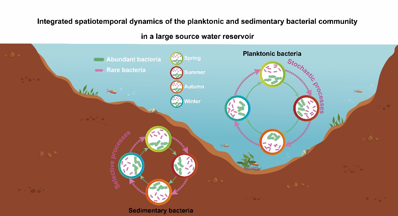 近日,公司党晨原讲师在环境领域顶级学术期刊Water Research上发表了题为Rare biosphere regulates the planktonic and sedimentary bacteria by disparate ecological processes in a large source water reservoir”的研究论文,探究了南水北调中线工程水源地——丹江口水库的水体和沉积物中细菌的群落动态和生态驱动过程,揭示了稀有细菌在群落的时空演替中的主导作用,以及这些稀有细菌在水体和沉积物中分别受随机过程和选择性过程的调控。