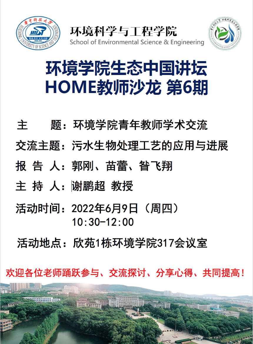6月9日上午,beats365“HOME教师沙龙”第六期讲座在欣苑1栋317会议室举行。本次教师沙龙邀请到市政系的青年教师郭刚副研究员、苗蕾副教授、昝飞翔副研究员,围绕“污水生物处理工艺的应用与进展”的主题展开学术交流,本次讲座由谢鹏超教授主持。