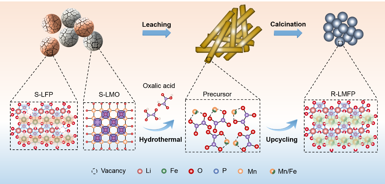 图1. 废旧正极材料升级再生LMFP材料的示意图